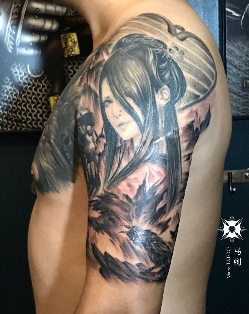 • 纹身吧推荐的披肩图腾半胛纹身图案作品展示