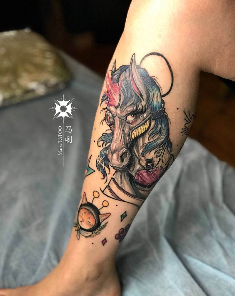 当前位置: 首页 >江苏省徐州市纹身店-马刺·tattoo纹身图案>小腿拼接纹身图片_腿部纹身图案