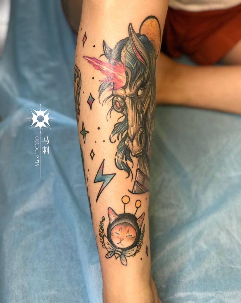 当前位置: 首页 >江苏省徐州市纹身店-马刺·tattoo纹身图案>小腿拼接纹身图片_腿部纹身图案