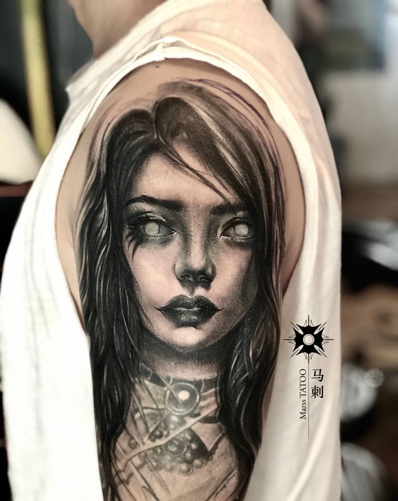 • 纹身吧推荐的披肩图腾半胛纹身图案作品展示