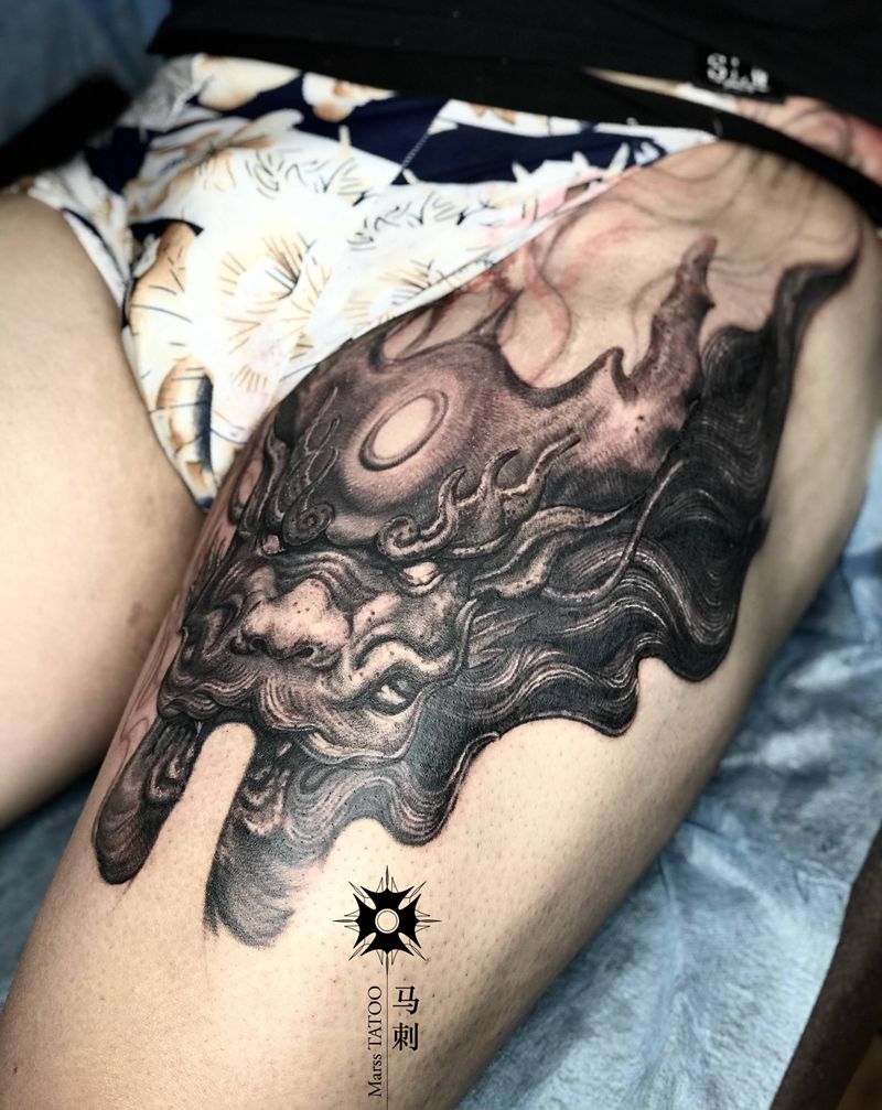 • T网红王老大花腿龙纹身图片_腿部新传统纹身图案