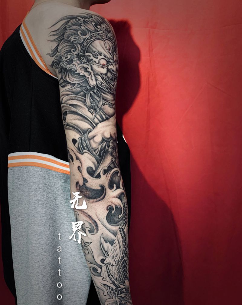 当前位置: 首页 >江苏省徐州市纹身店-徐州无界纹身纹身图案>新传统花臂纹身图片_手臂新传统大黑天鳌鱼花臂纹身图案