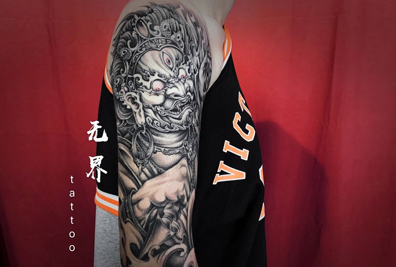 当前位置: 首页 >江苏省徐州市纹身店-徐州无界纹身纹身图案>新传统花臂纹身图片_手臂新传统大黑天鳌鱼花臂纹身图案