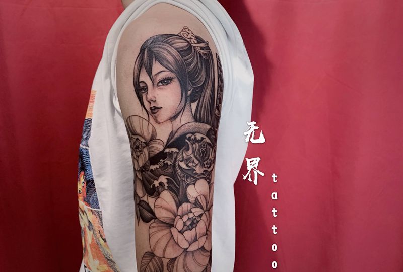 当前位置: 首页 >江苏省徐州市纹身店-徐州无界纹身纹身图案>美人纹身图片_手臂点刺艺妓素花美女纹身图案