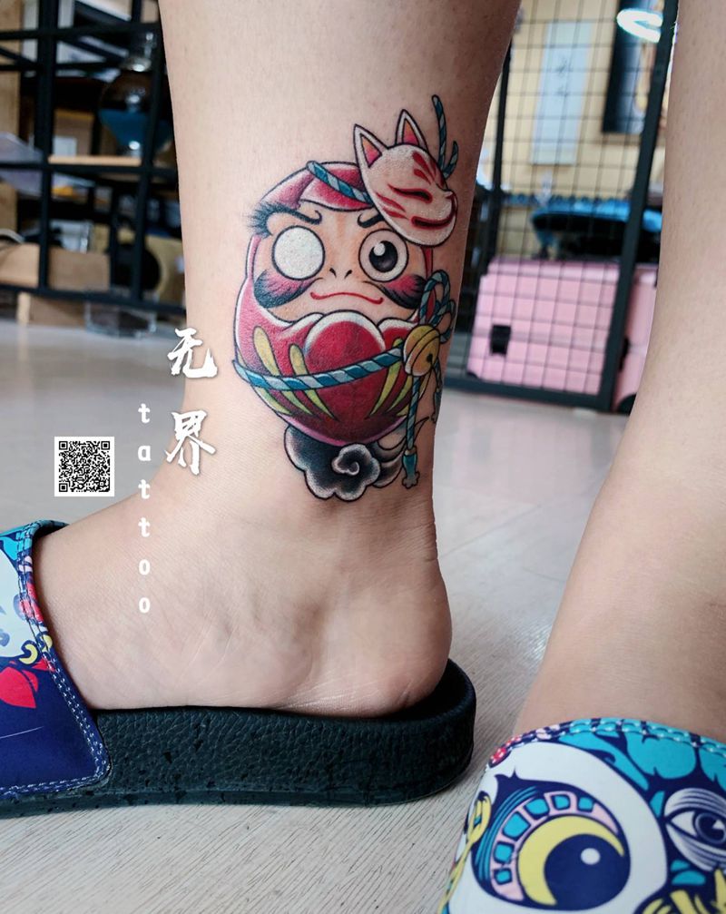 当前位置: 首页 >江苏省徐州市纹身店-徐州无界纹身纹身图案>遮盖纹身图片_腿部脚部老传统水彩脚踝达摩蛋日式纹身图案