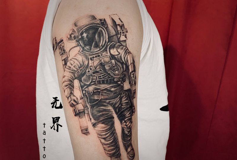 当前位置: 首页 >江苏省徐州市纹身店-徐州无界纹身纹身图案>宇航员纹身图片_手臂欧美写实大臂宇航员纹身图案