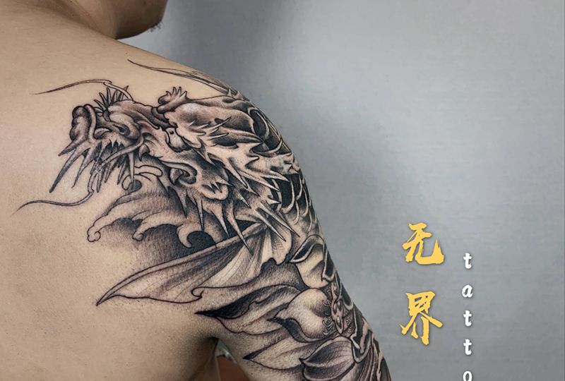 黑灰满背纹身图案