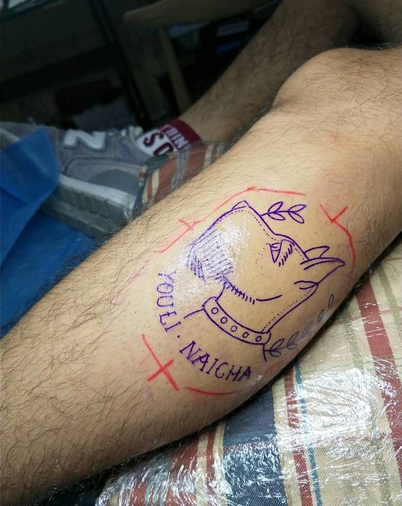 当前位置: 首页 >江苏省徐州市纹身店-徐州无界纹身纹身图案>狗狗纹身图片_腿部Old SchoolNew School动物纹身图案