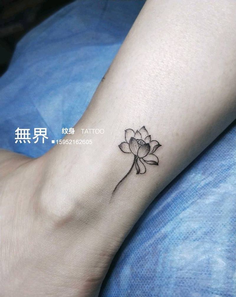 荷花纹身图片_脚部荷花素花纹身图案