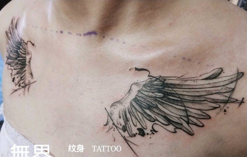 翅膀纹身图片_肩部胸部翅膀纹身图案