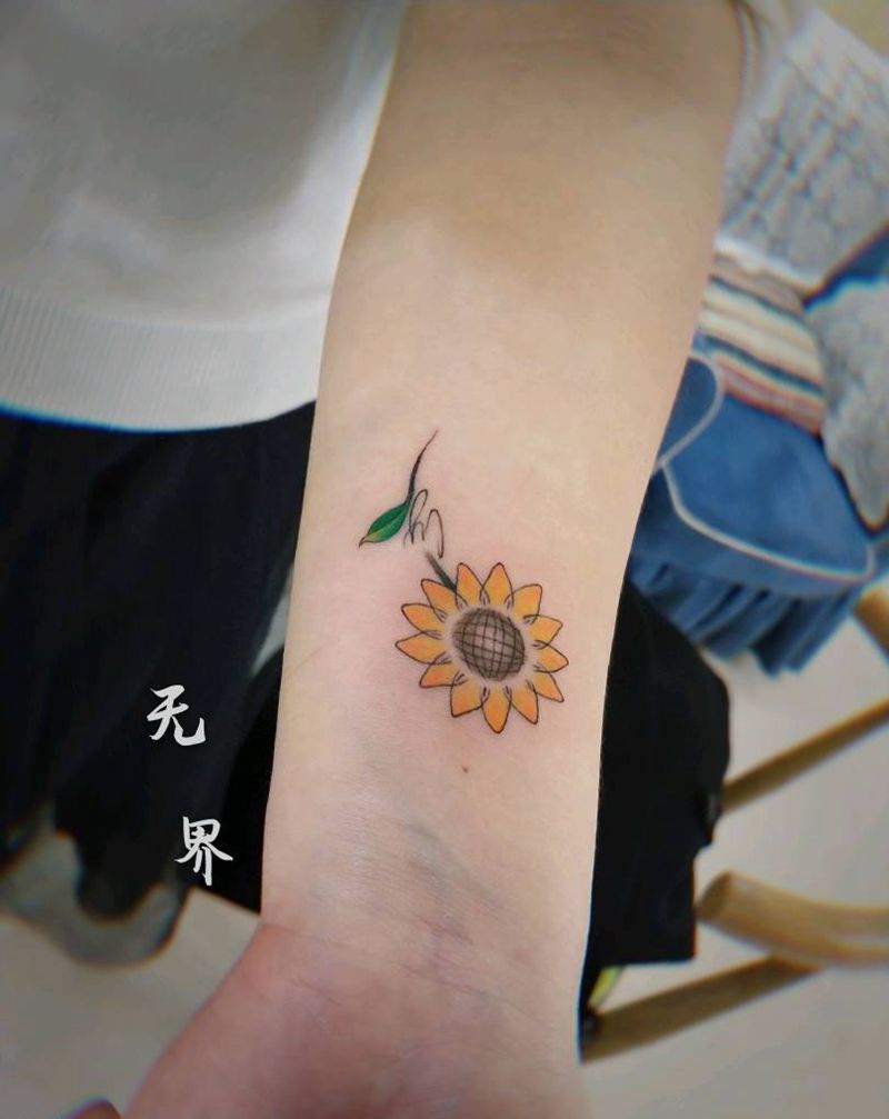 当前位置: 首页 >江苏省徐州市纹身店-徐州无界纹身纹身图案>小清新纹身图片_手臂花向日葵小清新纹身图案