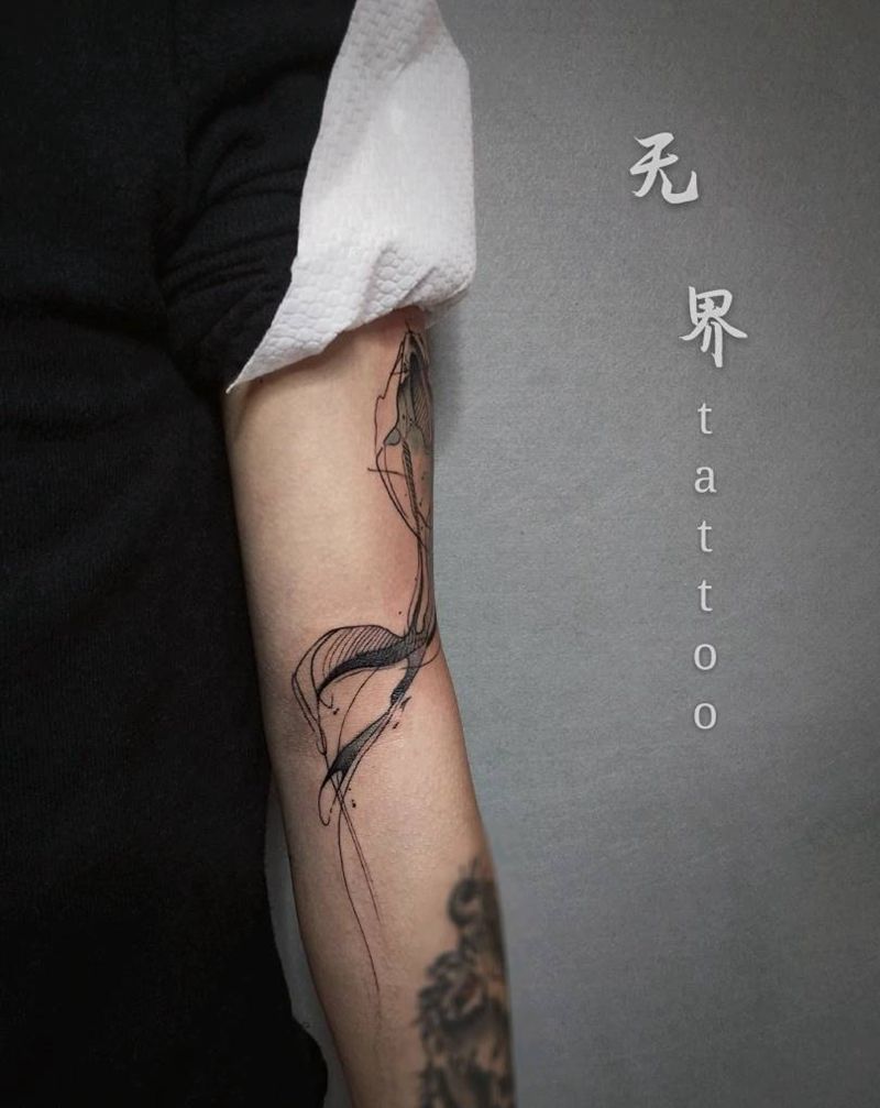 当前位置: 首页 >江苏省徐州市纹身店-徐州无界纹身纹身图案>鱼纹身图片_手臂水墨鲤鱼写意纹身图案