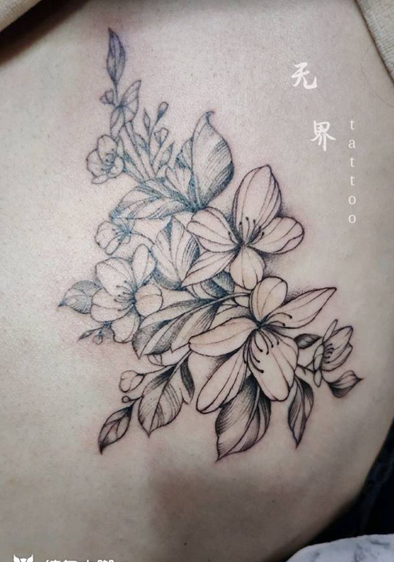 当前位置: 首页 >江苏省徐州市纹身店-徐州无界纹身纹身图案>素花纹身图片_背部花卉素花清新纹身图案