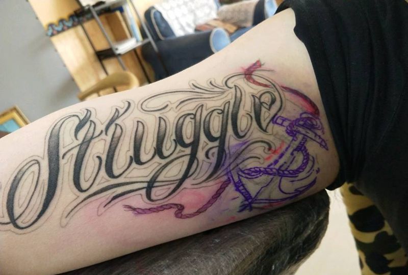 当前位置: 首页 >江苏省徐州市纹身店-徐州无界纹身纹身图案>船锚纹身图片_手臂花体字船锚大臂纹身图案