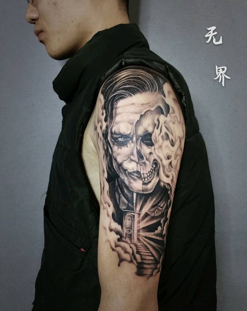 当前位置: 首页 >江苏省徐州市纹身店-徐州无界纹身纹身图案>小丑纹身图片_手臂欧美写实漫威小丑纹身图案