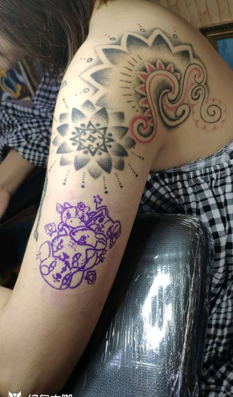 当前位置: 首页 >江苏省徐州市纹身店-徐州无界纹身纹身图案>生肖纹身图片_手臂水彩卡通动物生肖家庭纹身图案