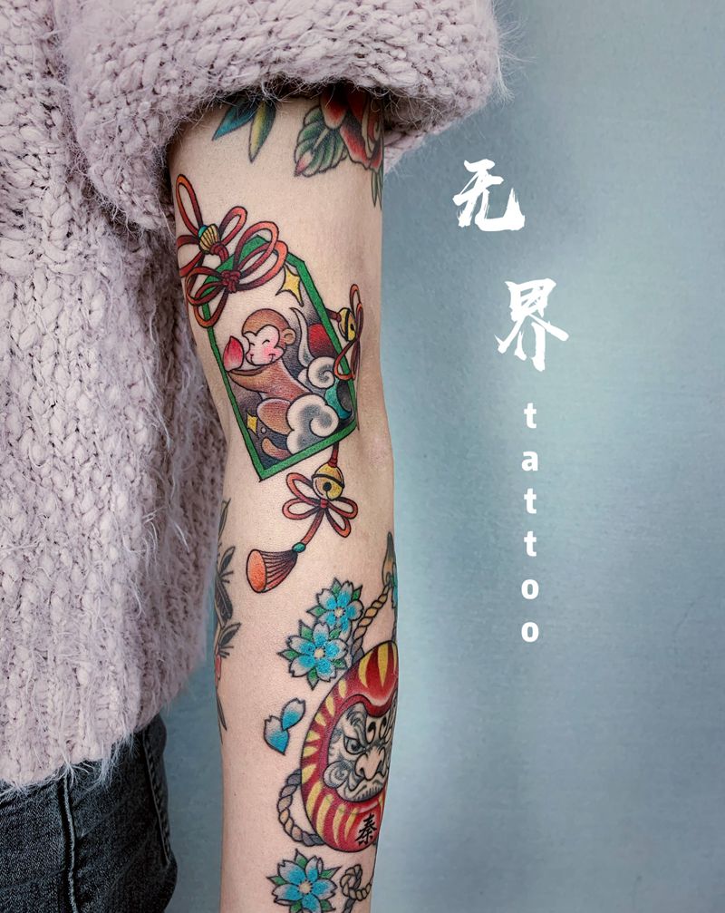 当前位置: 首页 >江苏省徐州市纹身店-徐州无界纹身纹身图案>生肖御守纹身图片_手臂水彩New School猴子御守日式纹身图案