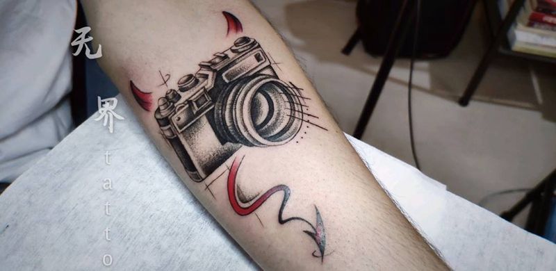 当前位置: 首页 >江苏省徐州市纹身店-徐州无界纹身纹身图案>相机纹身图片_手臂欧美写实点刺恶魔照相机小臂纹身图案