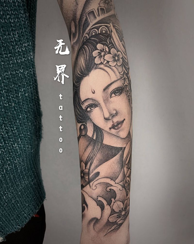 当前位置: 首页 >江苏省徐州市纹身店-徐州无界纹身纹身图案>艺伎纹身图片_手臂新传统艺伎美女侍女纹身图案