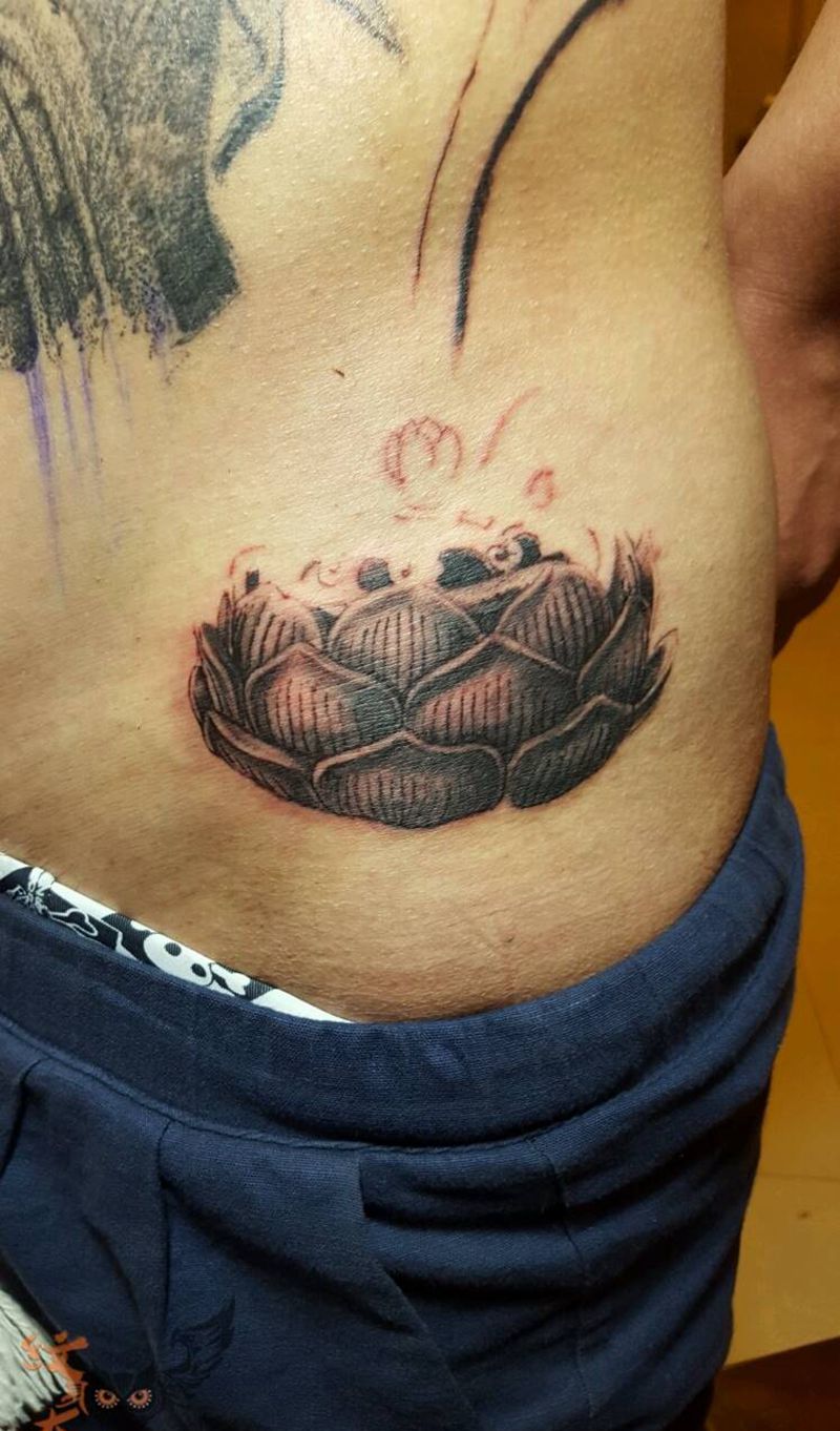• 时尚性感的腹部莲花纹身图案