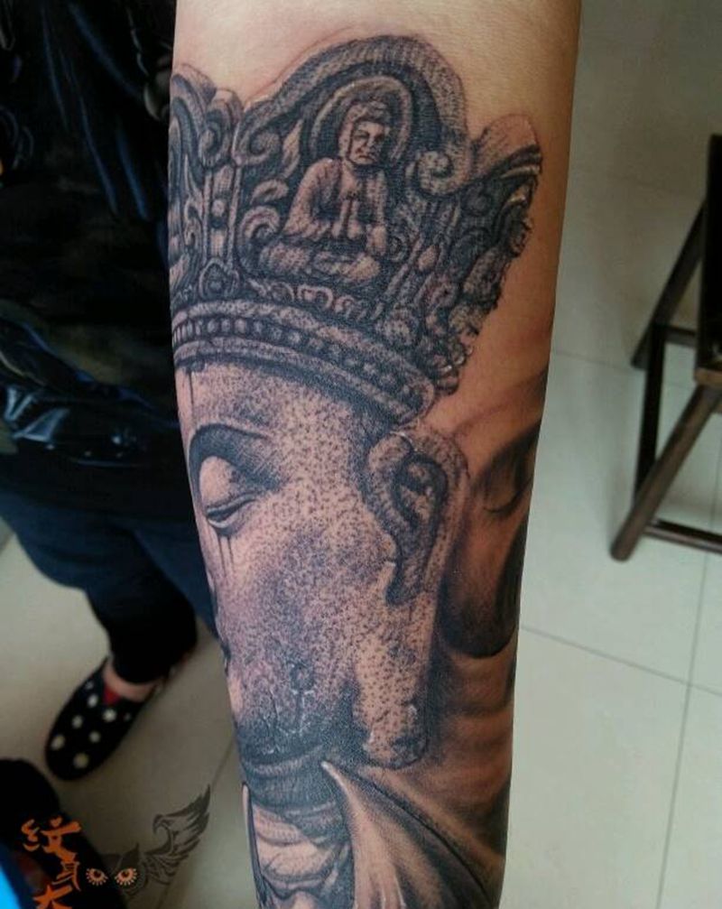 当前位置: 首页 >江苏省徐州市纹身店-晓义刺青纹身图案>地藏王纹身图片_手臂欧美写实鬼神宗教石雕纹身图案