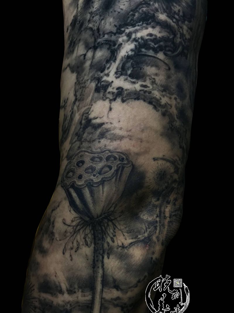 一组15张莲花纹身手