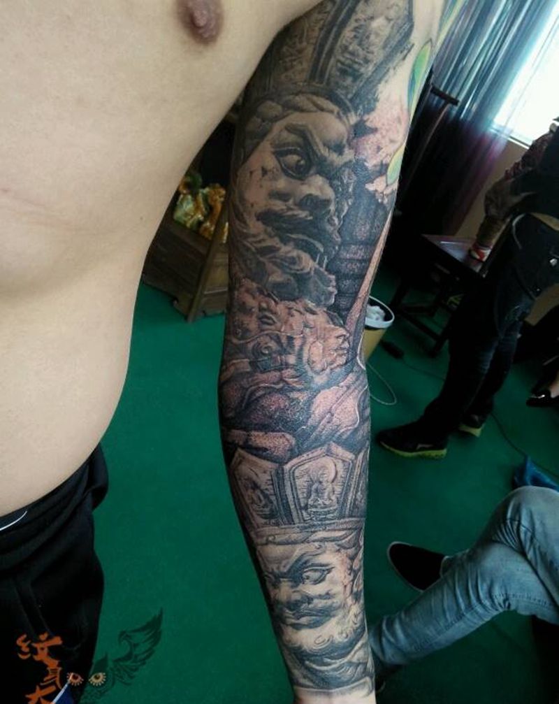 当前位置: 首页 >江苏省徐州市纹身店-晓义刺青纹身图案>四大金刚纹身图片_手臂欧美肖像写实石雕纹身图案