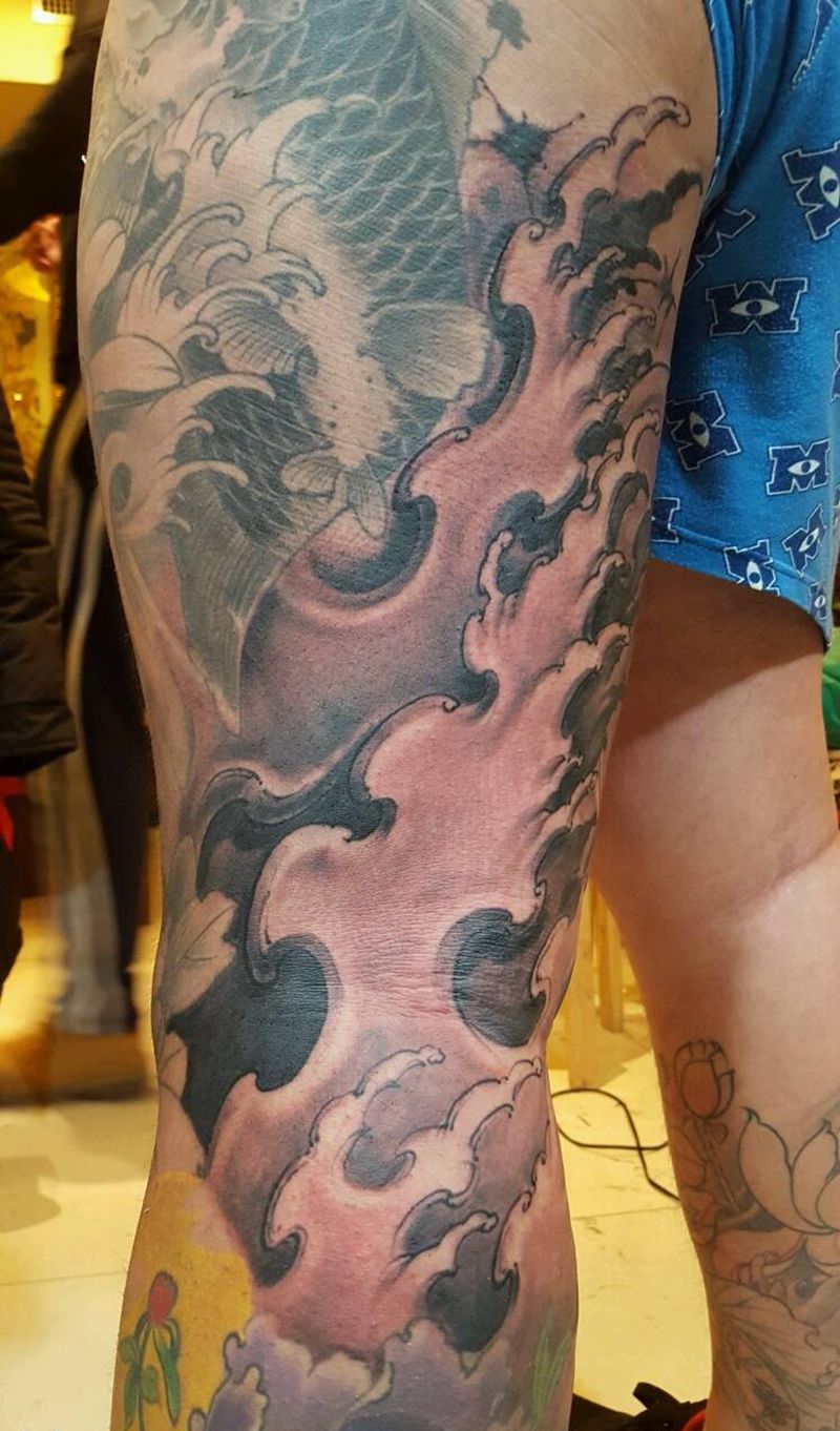 浪纹身图片_腿部传统植物原创成品纹身图案