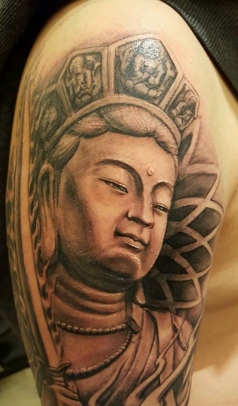 虚空藏菩萨纹身图片_手臂欧美传统肖像人物宗教原创成品纹身图案