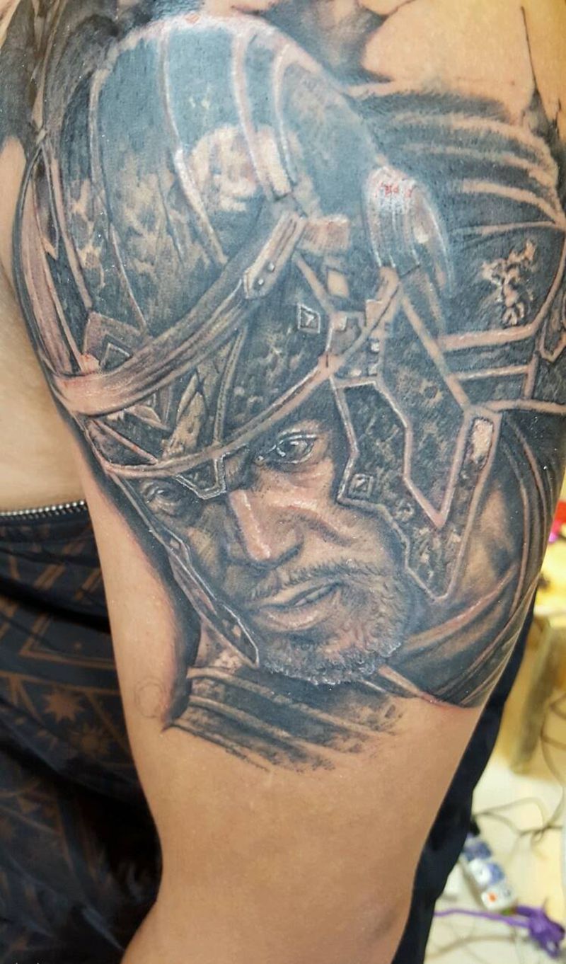 当前位置: 首页 >江苏省徐州市纹身店-晓义刺青纹身图案>勇士纹身图片_手臂欧美肖像写实人物原创纹身图案
