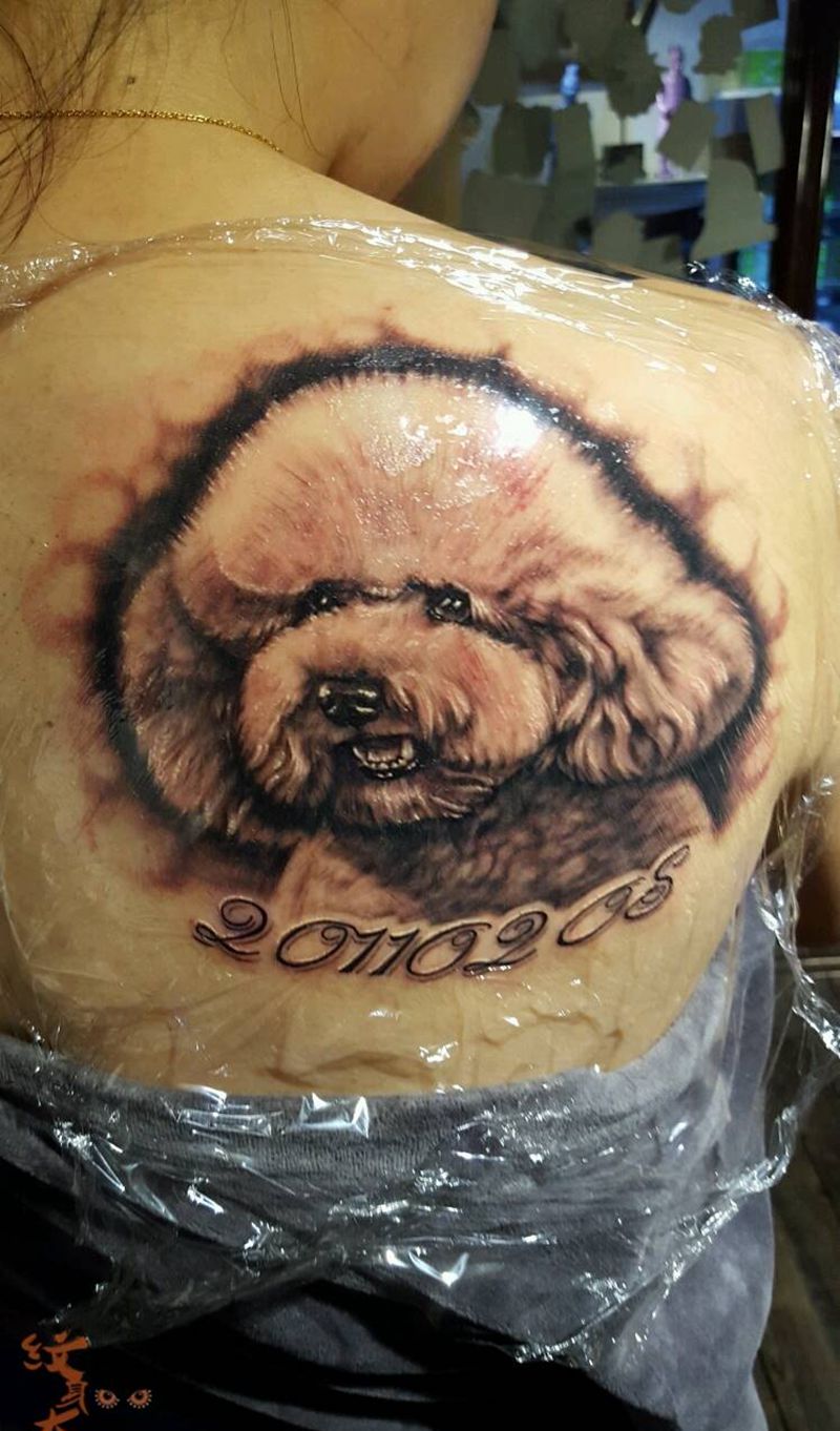 当前位置: 首页 >江苏省徐州市纹身店-晓义刺青纹身图案>泰迪肖像纹身图片_肩部欧美写实原创纹身图案