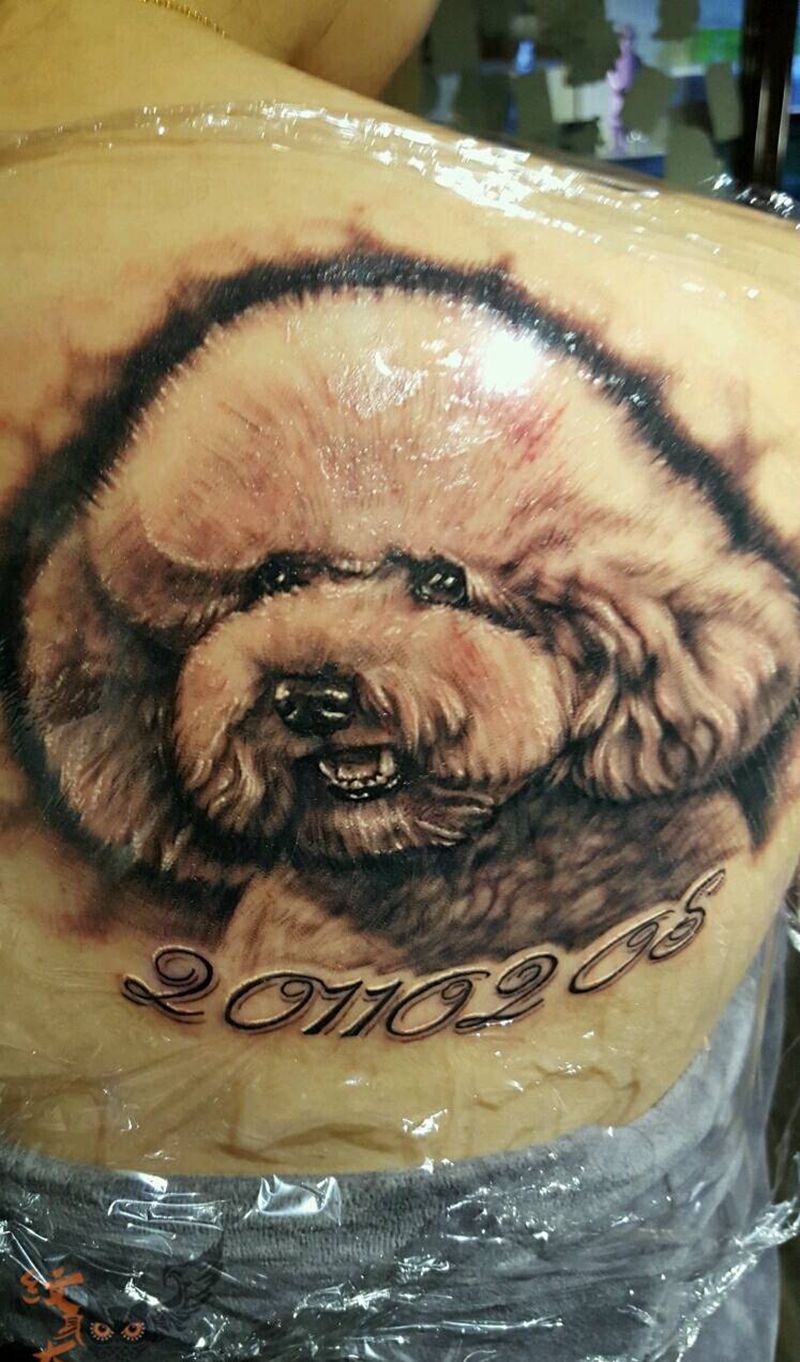当前位置: 首页 >江苏省徐州市纹身店-晓义刺青纹身图案>泰迪肖像纹身图片_肩部欧美写实原创纹身图案