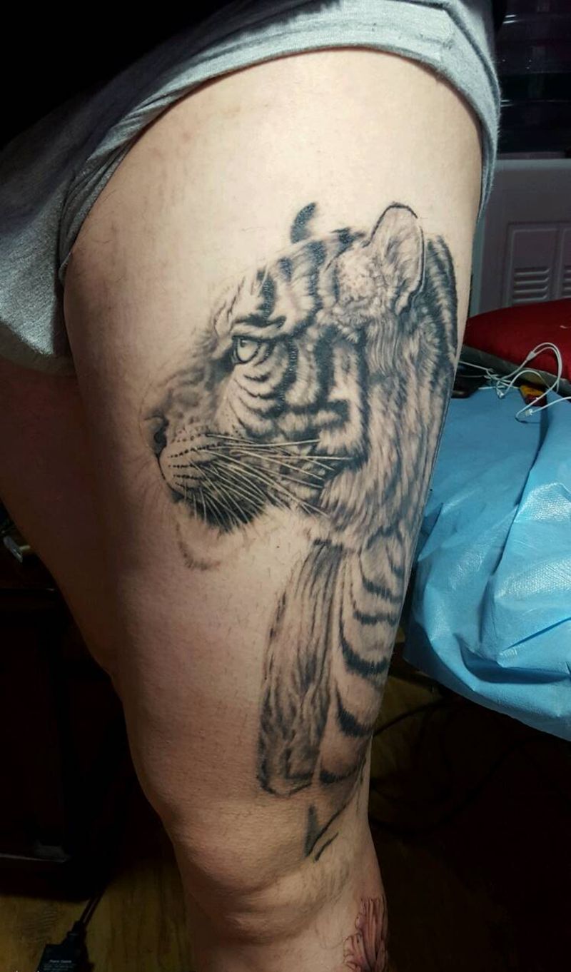 • T网红王老大花腿龙纹身图片_腿部新传统纹身图案