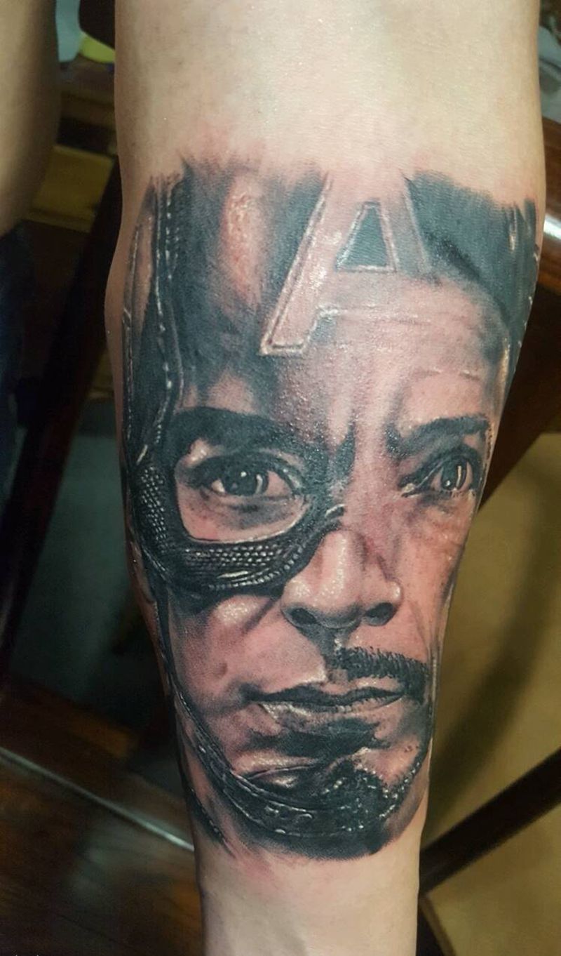 当前位置: 首页 >江苏省徐州市纹身店-晓义刺青纹身图案>复仇者联盟纹身图片_手臂欧美肖像写实人物原创成品纹身图案
