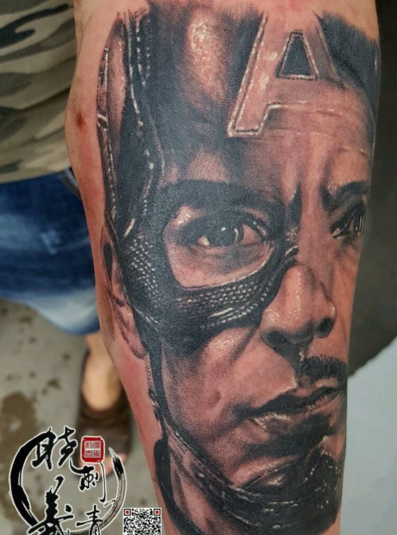 当前位置: 首页 >江苏省徐州市纹身店-晓义刺青纹身图案>漫威纹身图片_手臂欧美肖像写实原创纹身图案
