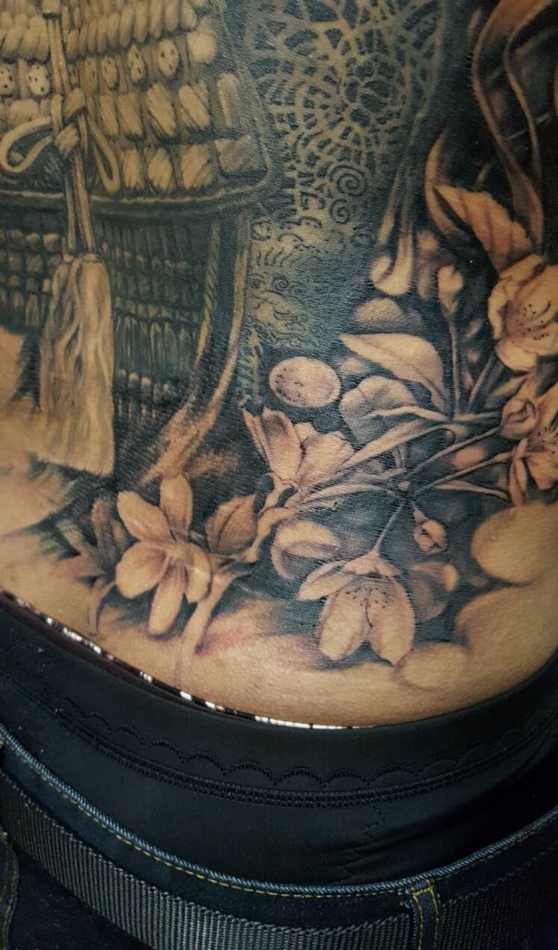 名字没想好纹身图片_背部欧美写实人物原创成品纹身图案