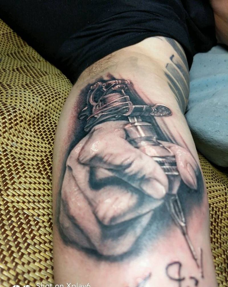 当前位置: 首页 >江苏省徐州市纹身店-晓义刺青纹身图案>独择之徒。。膝行必终纹身图片_手臂欧美写实原创成品纹身图案