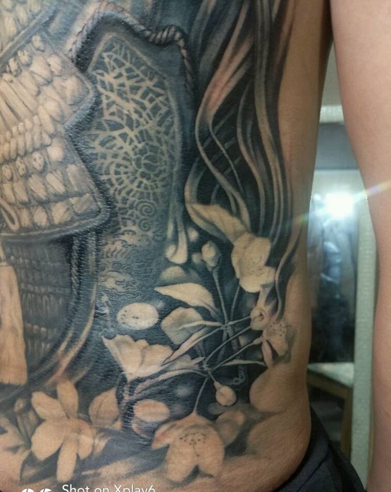 当前位置: 首页 >江苏省徐州市纹身店-晓义刺青纹身图案>鬼武士纹身图片_背部欧美写实人物原创成品纹身图案