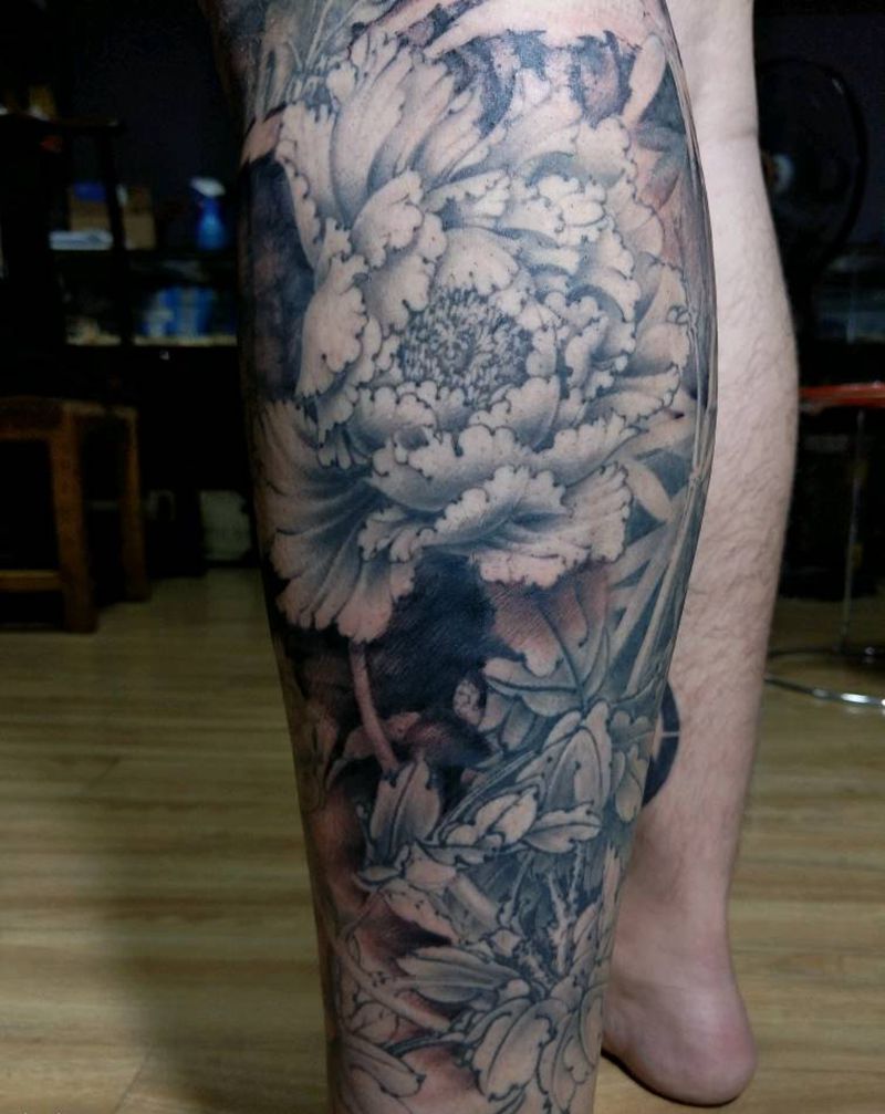 • T网红王老大花腿龙纹身图片_腿部新传统纹身图案