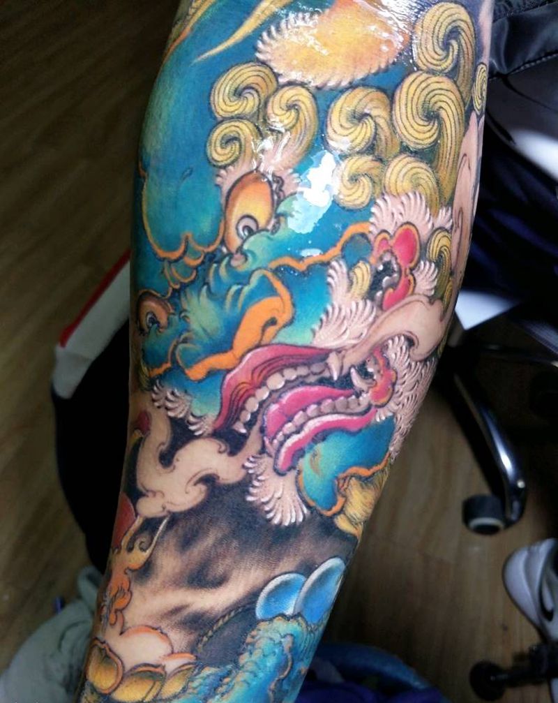 当前位置: 首页 >江苏省徐州市纹身店-晓义刺青纹身图案>彩色小臂牡丹唐狮纹身图片