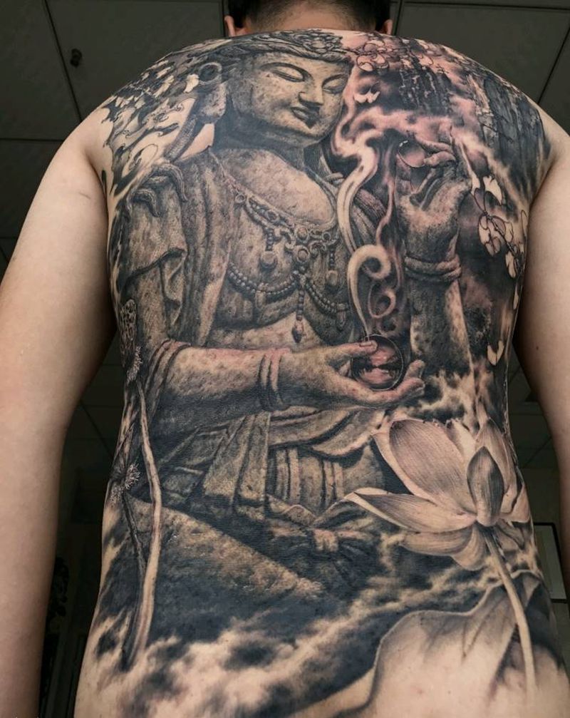 佛纹身图片_背部写实国画宗教原创石雕成品纹身图案