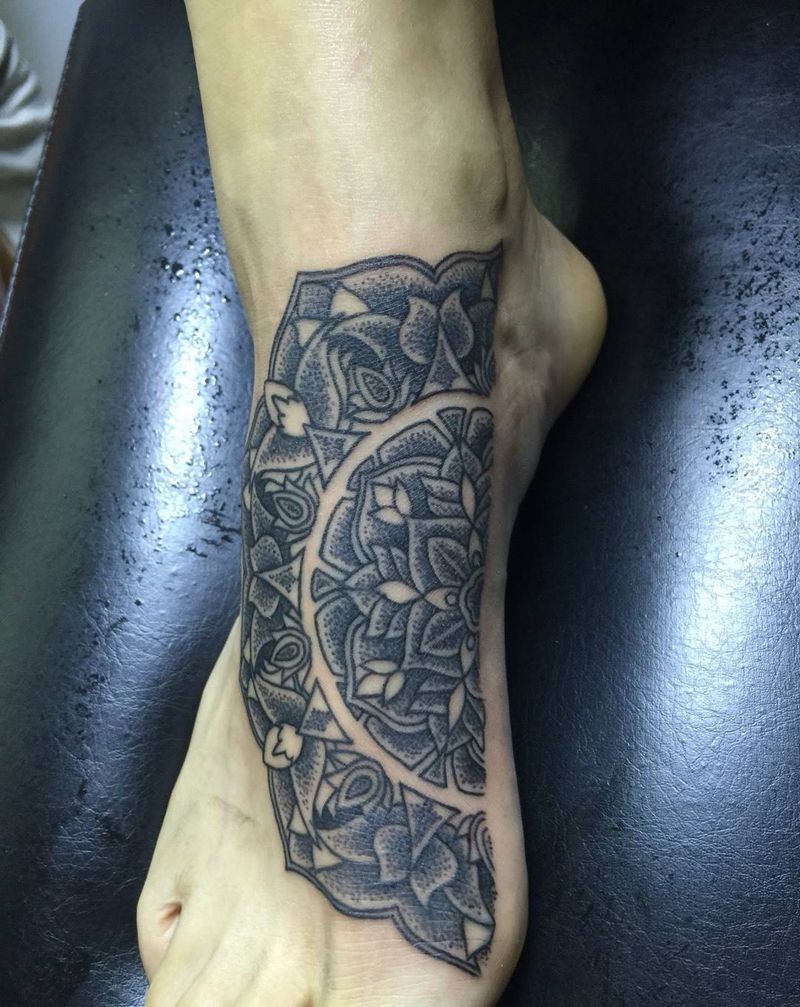 曼陀罗纹身图片_成品脚部传统几何纹身图案