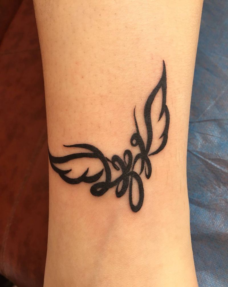 天使的翅膀纹身图片_脚部腿部成品传统图腾纹身图案