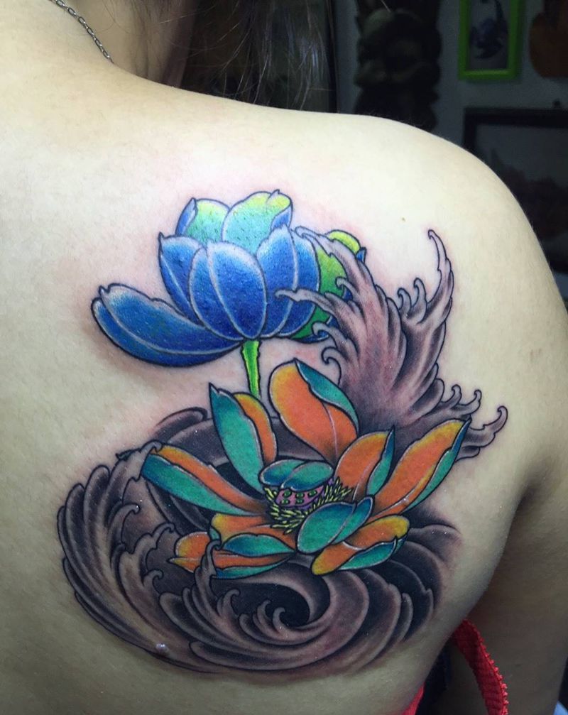 一组15张莲花纹身手