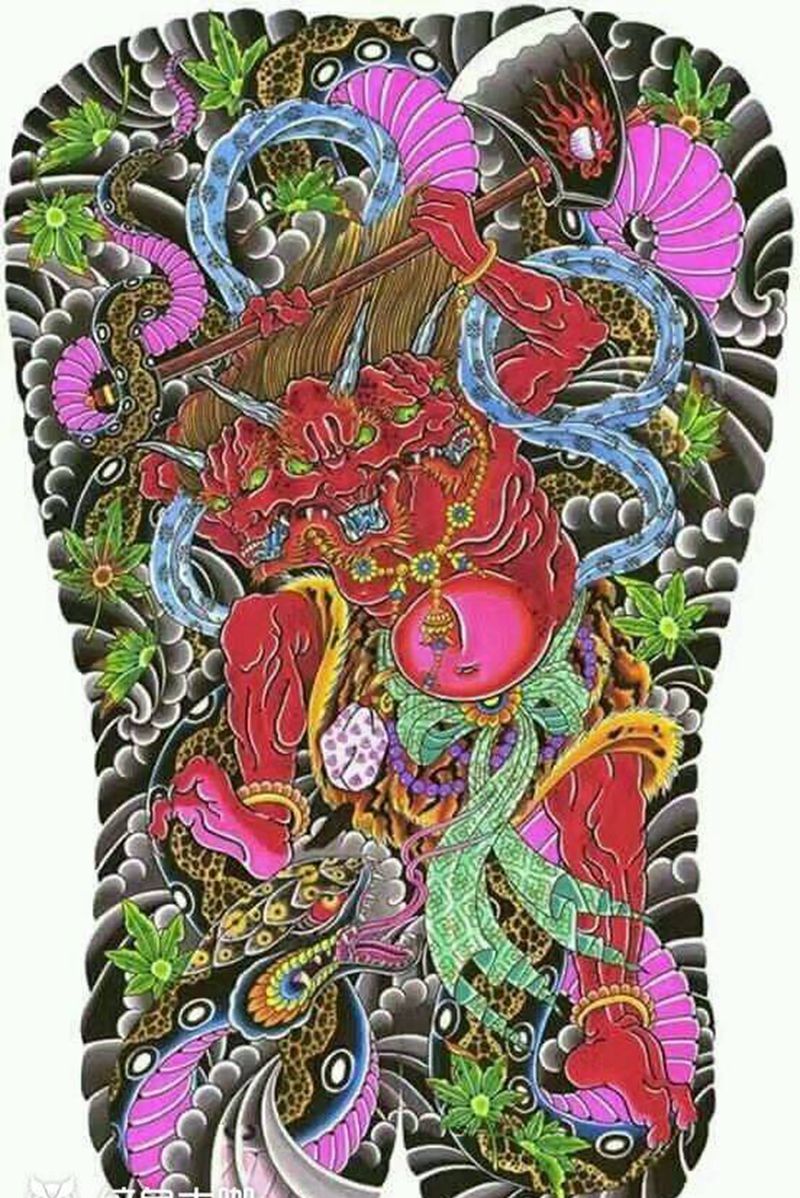 黑灰满背纹身图案