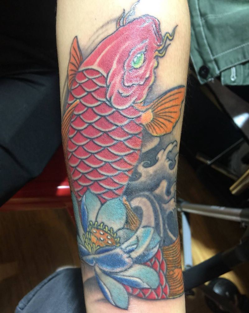 • T网红王老大花腿龙纹身图片_腿部新传统纹身图案