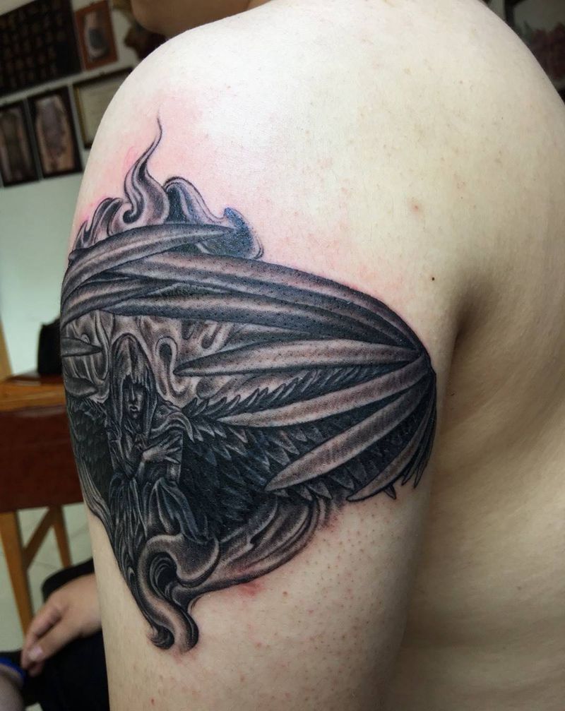 • 纹身吧推荐的披肩图腾半胛纹身图案作品展示