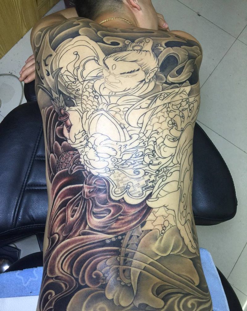 • T云龙九郎纹身图片_背部老传统云龙九郎纹身图案