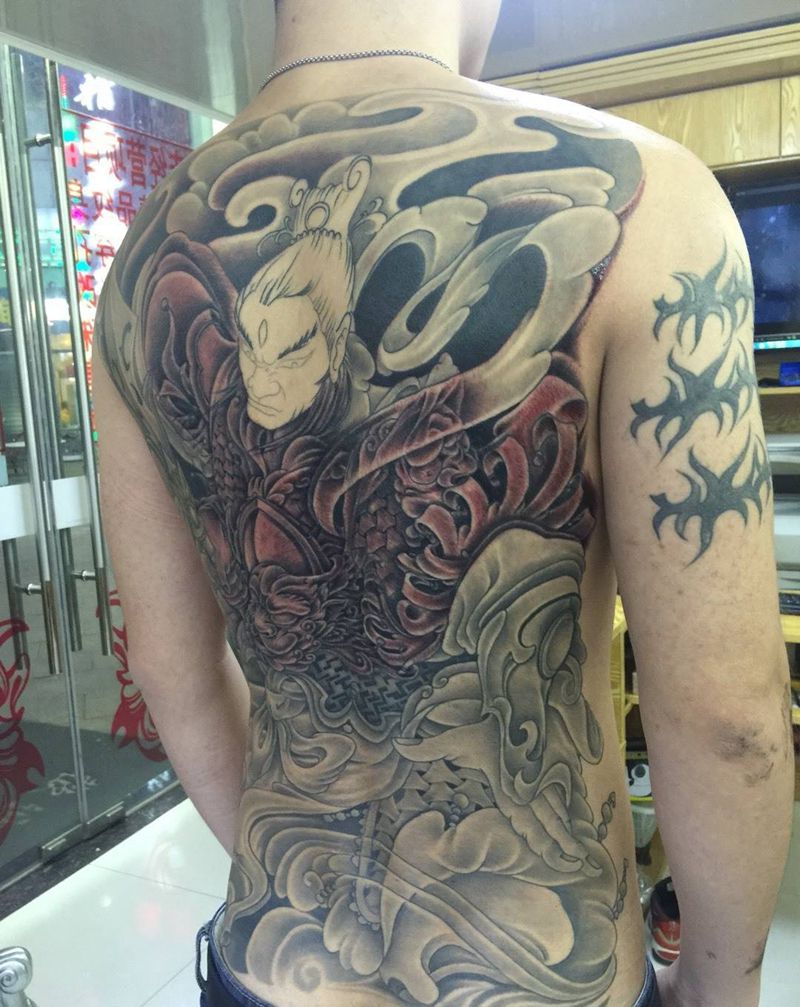 黑灰满背纹身图案