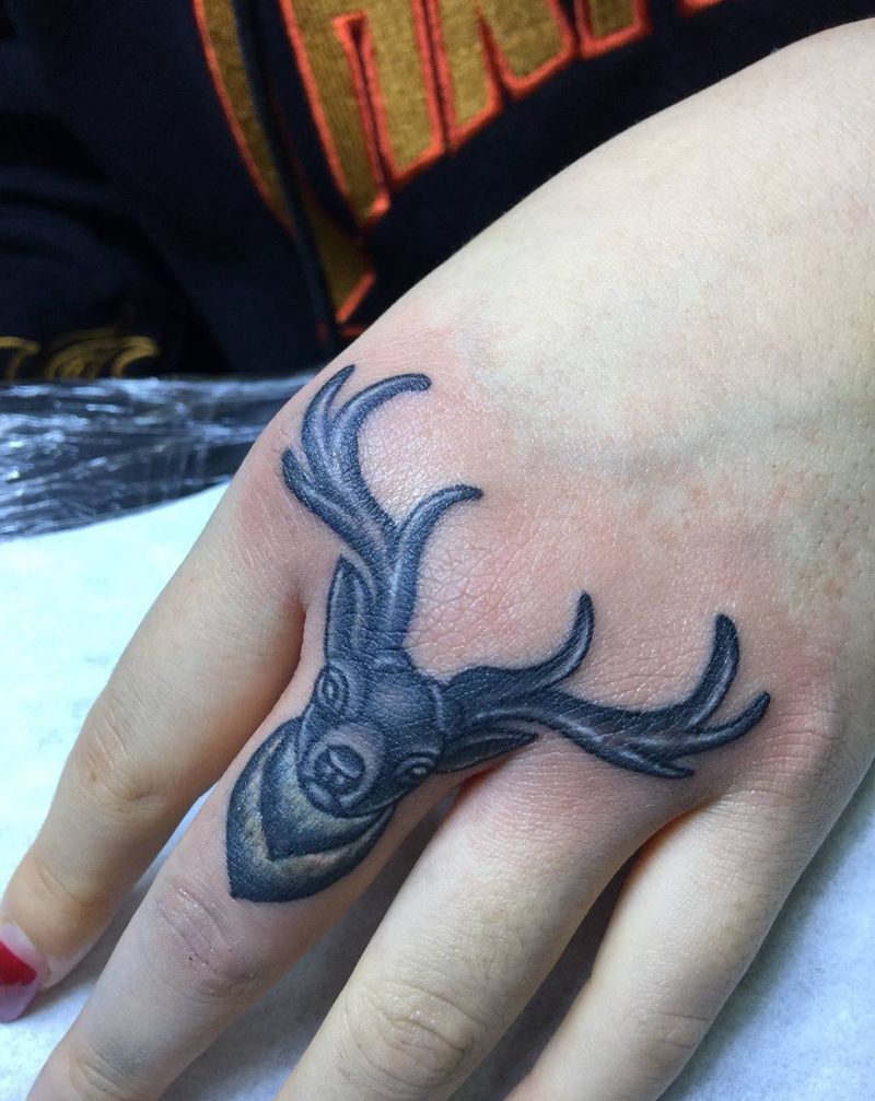 • 手背潮流时尚的玫瑰花眼睛纹身图案